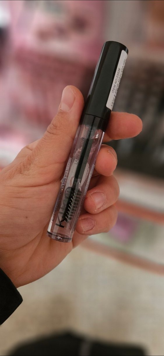 Bej renkli ambalajda, gri fırça uçlu maskara, kaş sabitlemek için uygundur. ️