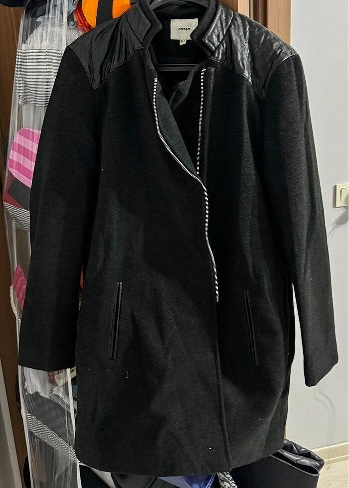 Kaşe kaban deri omuz detaylı uzun kışlık 42/46 beden arası uyumlu