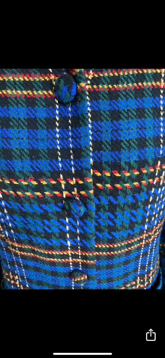 Bu kadın uzun kaban, düğmeli ön ve kesimli yaka detayına sahiptir. Koyu çok renkli desenli kaşekumaşı, uzun kollu ve normal kesimdir, vintage bohem tarzını yansıtır. Dış mekan için uygundur. 1 kere giyilmiştir dar geldiği için satışa sunulmuştur