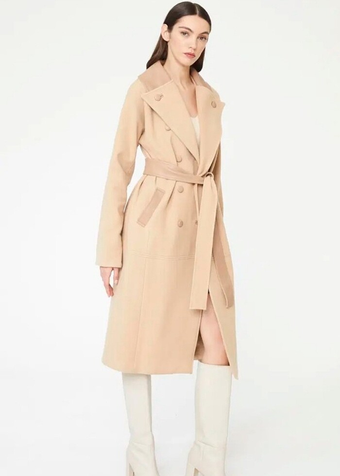 Camel Kruvaze Deri Garnili Kaşe Kaban hiç kullanılmadı sitesinde 3 bin