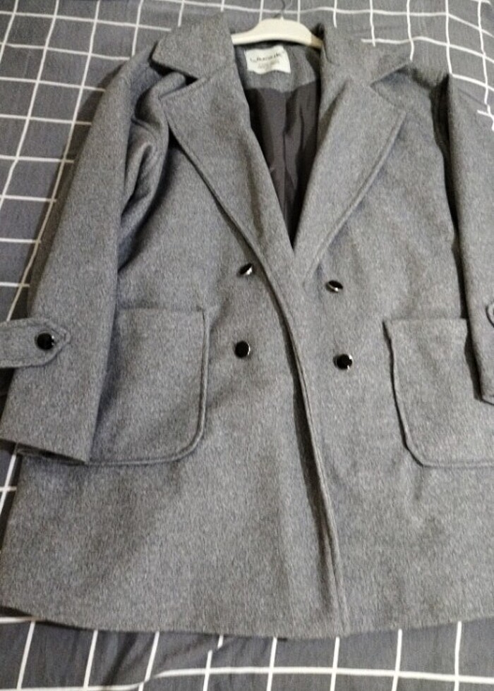 Oversize kalıp cep ve kol detaylı kaşe kaban standart beden 1 kez giyildi