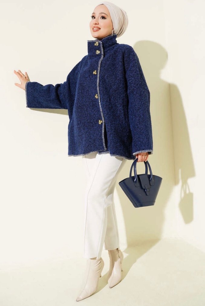 Parlak lacivert kot kumaştan, düğmeli ve çıtçıtlı, normal kesim midi uzunlukta kadın ceket. Uzun kollu ve klasik yaka detaylı, günlük kullanıma uygun. Sıfırdır etiketi üstündedir standarttır