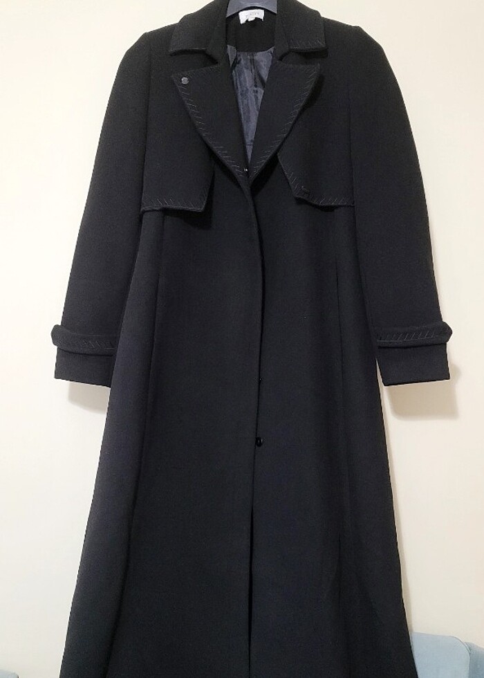Annemin, hiç giyilmedi. Kumaşı kalın, sıcak tutar. Boyu yakasından 132 cm, 3 cm uzatma payo var. İki koltuk arası 55 cm.