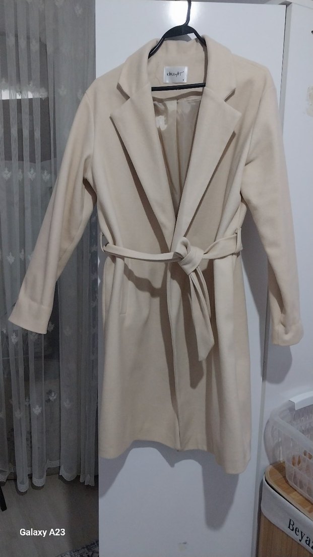 Bej uzun kadın ceketi, kemerli ve klasik yakalı tasarıma sahiptir. çok az giydim 40 42 bedene çok güzel olur. S beden yazıyor ama öyle değil ben 42 bedenim. salaş durmasını istiyorsanız 40 bedene çok çok güzel olur. deformesi kusuru asla yoktur. sayılı giyildi. o kadar güzel ki inanın ağzınıza asla pişman olmayacağınız bir ürün çok güzel bu fiyata kaçırmayın fiyatını çok uygun bırakıyorum