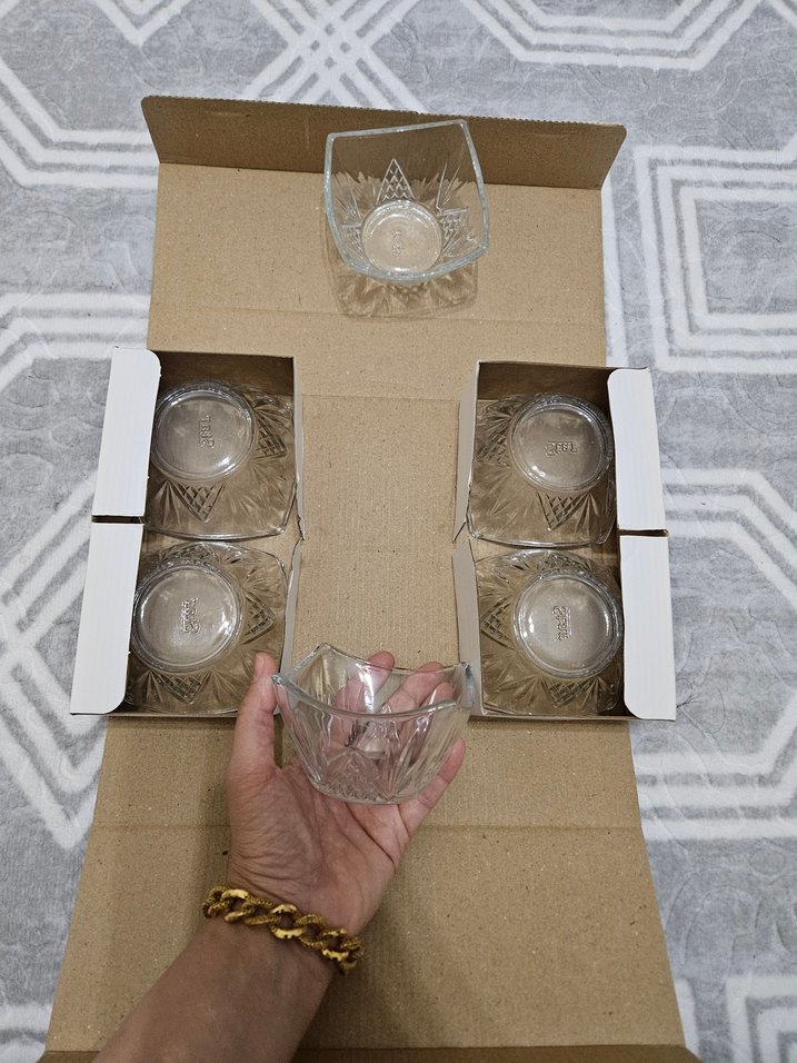 kristal desenli, camdan yapılmış 6'lı kase seti. Her kase şık bir dokulu tasarıma sahip. Tatlı veya atıştırmalık servisi için uygundur. hediye geldi. hiç kullanmadım. alana hayırlı olsun