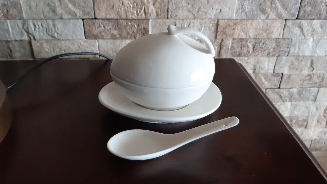 Tabak hariç boyu 14cm, eni 11cm, yüksekliği sap hariç 10cm. Yumurta biçimli, şık duruyor. Çok amaçlı, bal, reçel, zeytin, sos, baharat, vs için kullanılabilir. Porselendir. Hiç kullanılmadı. #kahvaltılık #sosluk #baharatlık #reçellik #baltabağı