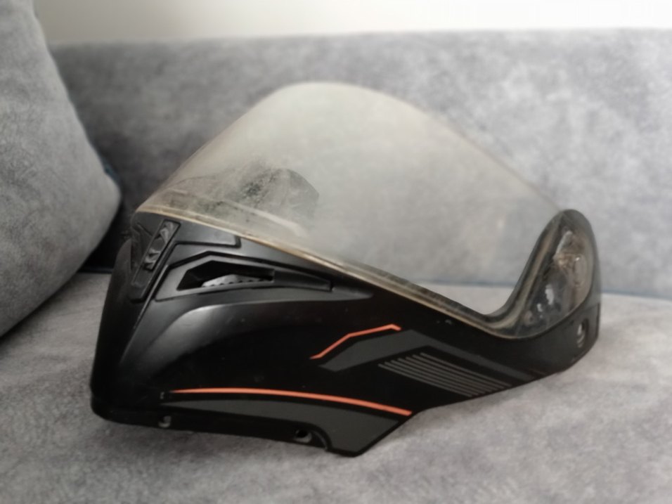 Birkaç çizik ve çenelik kısmındaki kırık dışında sorun yok.