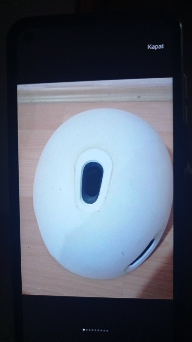 Beyaz renkte, yuvarlak ve pürüzsüz yüzeye sahip kablosuz bilgisayar mouse. Ortasında kaydırma tuşu bulunur. ️