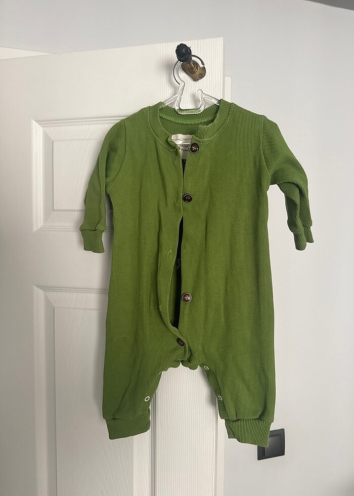 6-9 ay çok iyi durumda kaşkorse tulum (1 düğmesi düşmüştü, fotoğraflarda gösterdim)