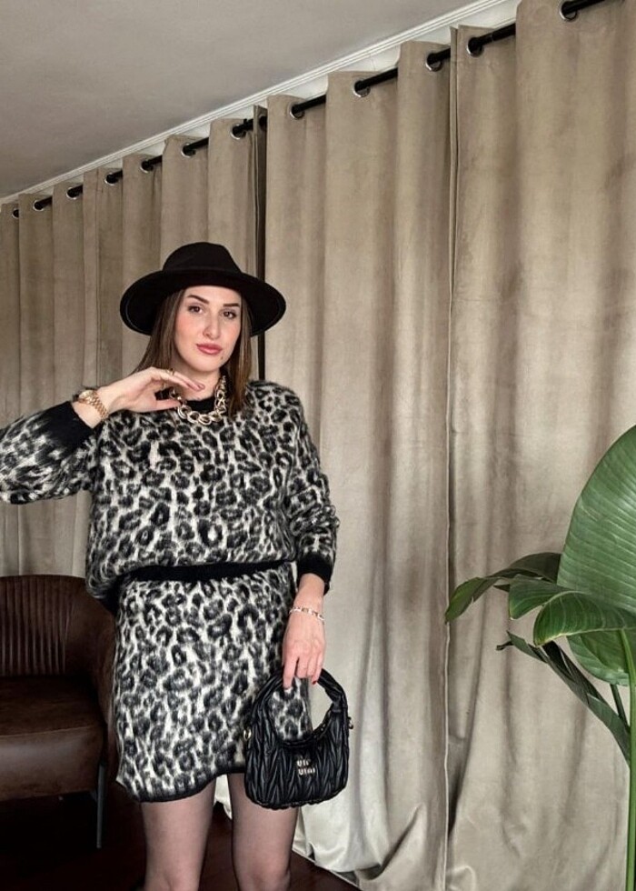 Kaşmir dokulu leopar desenli yumoş triko takımı s-xl uyumludur.