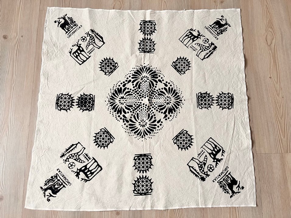 Kastamonu’nun köklü taş baskı geleneği ile hazırlanmış, tamamı el emeği bu özel parça; seri üretim değil, tek ve özgün bir çalışmadır. Doğal pamuk bez üzerine, geleneksel kalıplarla basılmıştır. Anadolu’nun bereket, koruyuculuk ve yaşam döngüsünü simgeleyen motifleriyle sadece bir örtü değil, kültürel bir miras sunar. ✔️ El yapımı – her biri benzersiz ✔️ Otantik & zamansız tasarım ✔️ Masa, sehpa, duvar dekoru veya bohça olarak kullanım Boyutu 73 cm ve 75 cm dir. İlk yıkamasını kendim yapmış olup, kök boyasını akıtmış bulunmaktayım. 30 ya da 40 derece de yıkayabilirsiniz