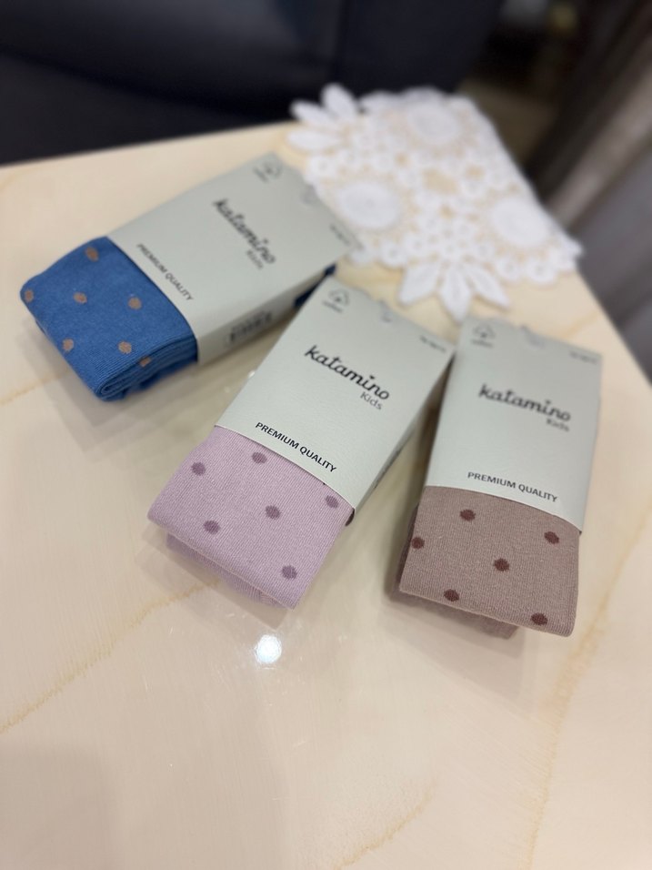Katamino kız çocuk çorapları, yumuşak pamuk kumaş üzerine pastel renklerde puantiyeli desen içerir, rahatlık ve şıklık sağlar. 1 adet fiyatıdır 7-8 yaş