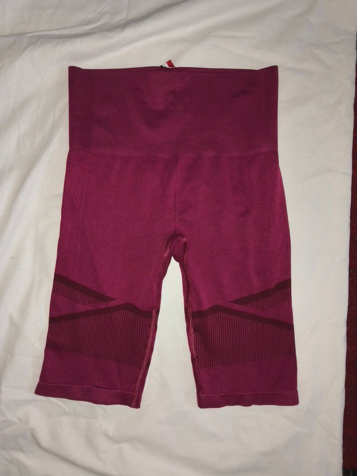 Bordo, yüksek bel, esnek kumaştan yapılmış, normal boy spor taytı.