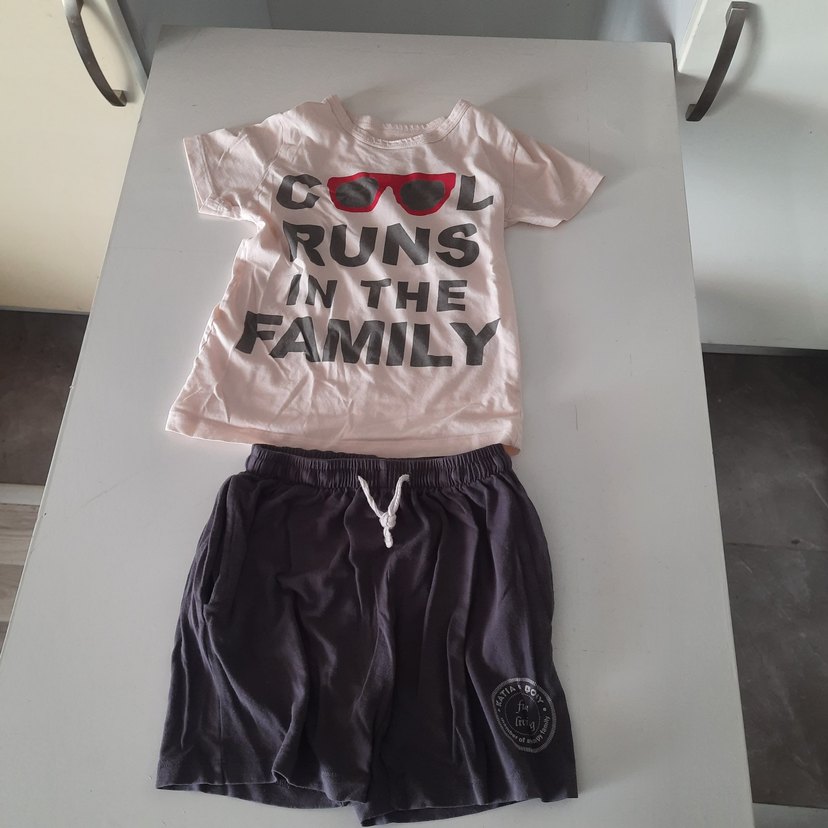 Yumuşak, pamuklu, 4-5 yaş kız çocuğu için kaliteli pijama. 2 yaz kullanıldı. kalıbı geniş, dökümlü. göğüs çevresi 60 cm, şort beli lastikli , uzunluğu 30 cm. şortun cepleri var.