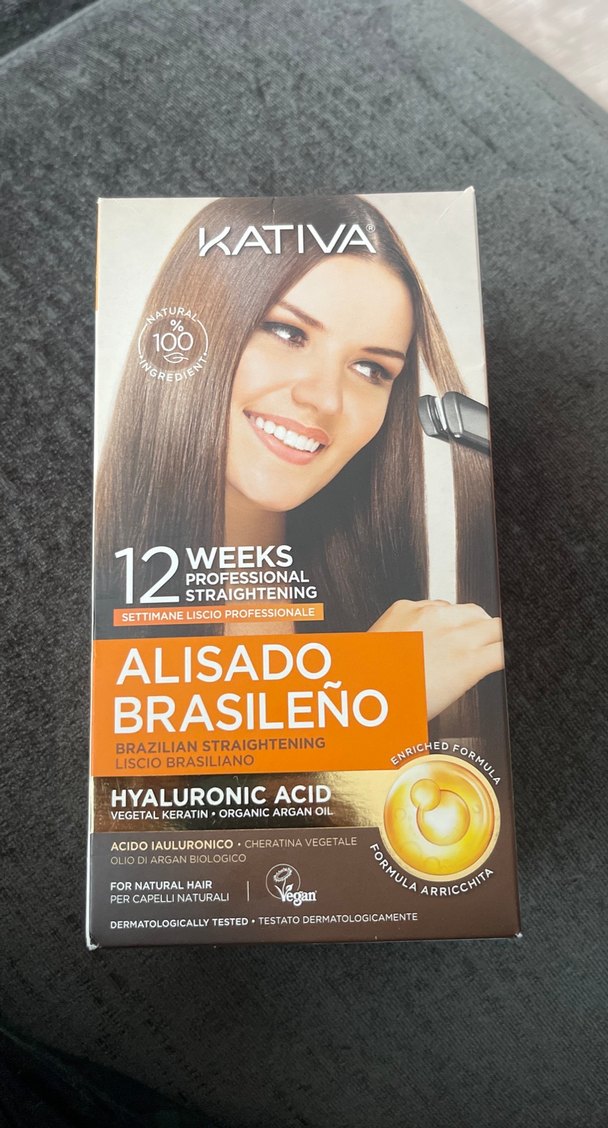 Kativa Brezilya düzleştirici bakım, hyaluronik asit, bitkisel keratin ve organik argan yağı içerir. Saçı 12 hafta boyunca düz ve parlak tutar. Dermatolojik olarak test edilmiştir.