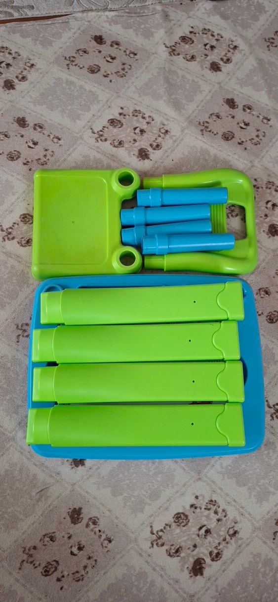 Katlanabilir parçalarıyla kolay taşınabilen renkli yeşil ve mavi plaj ve bahçe oyuncak seti. Açık hava oyunları için uygundur.