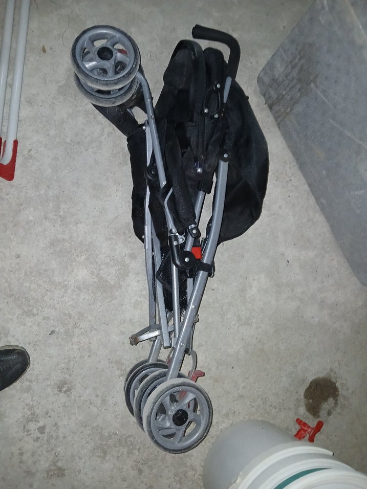 Bu siyah bebek arabası, taşımayı ve saklamayı kolaylaştıran katlanabilir tasarıma ve gri tekerleklere sahiptir.