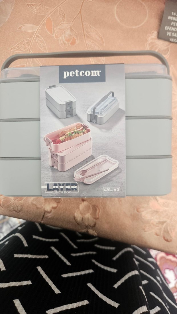 Diger Petcom pastel gri renkli, 3 katlı katlanabilir yemek kabı, taşıma sapı ve güvenli kapağa sahiptir.