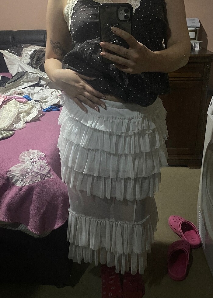 yarisina kadar astarli geri kalani sifon uzun fairy etek beli lastikli sifir #vintage #fairy #lolita #y2k
