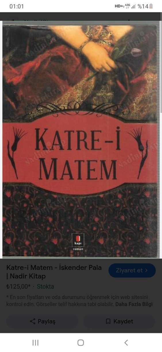 İskender Pala'nın Katre-i Matem romanı, Nadir Kitap tarafından 125 TL fiyatla sunulmaktadır.
