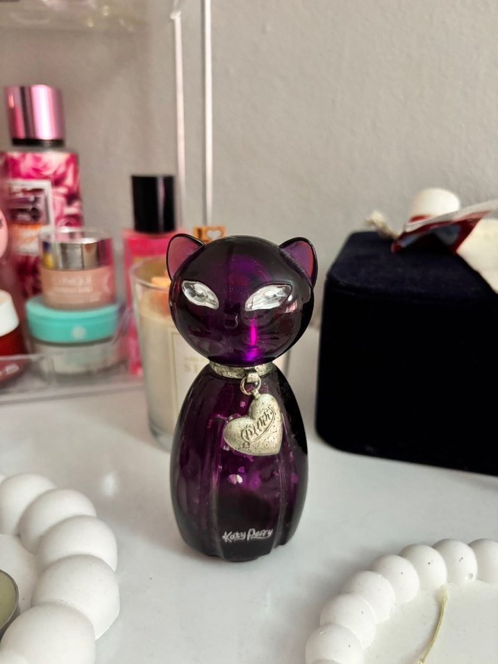 Katy Perry markasına ait mor kedi şeklinde şişesi ve gümüş kalp kolyesi bulunan kadın parfümüdür. Koleksiyonunuza farklı bir dokunuş katıyor.