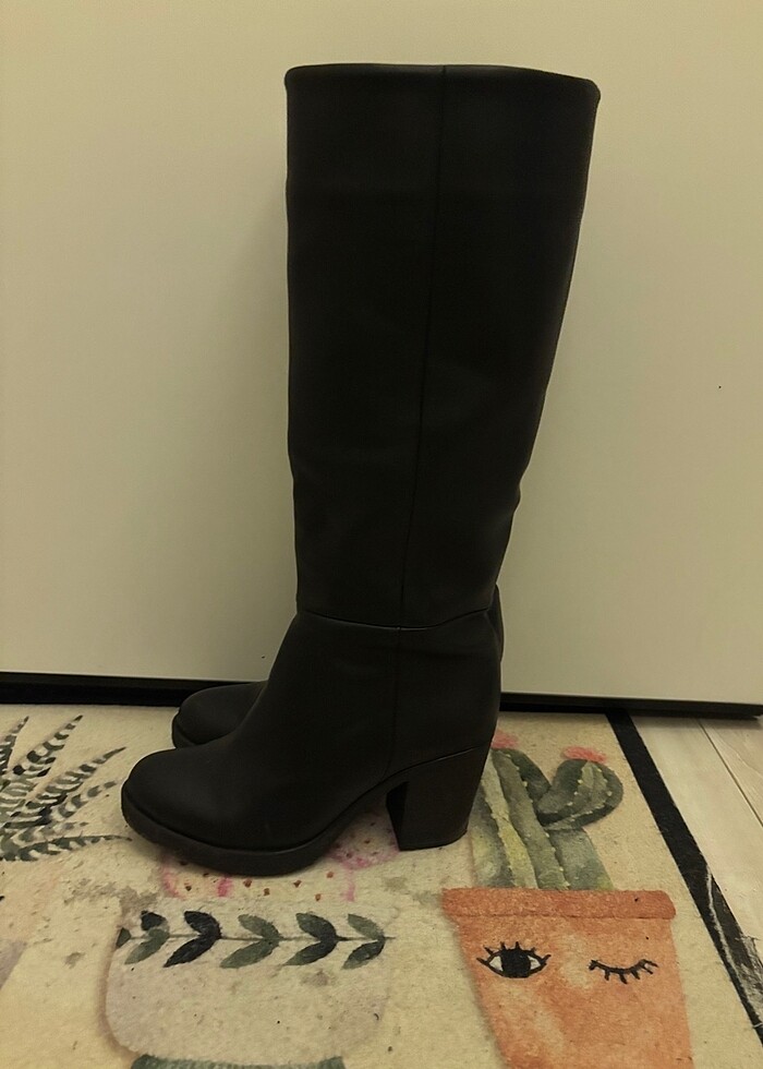 Boyner den fabrika marka 37 numara siyah kauçuk tam taban çizme 5,5 kalın topuklu çizme 2 defa giyildi. Bol geldiği için satılıyor.