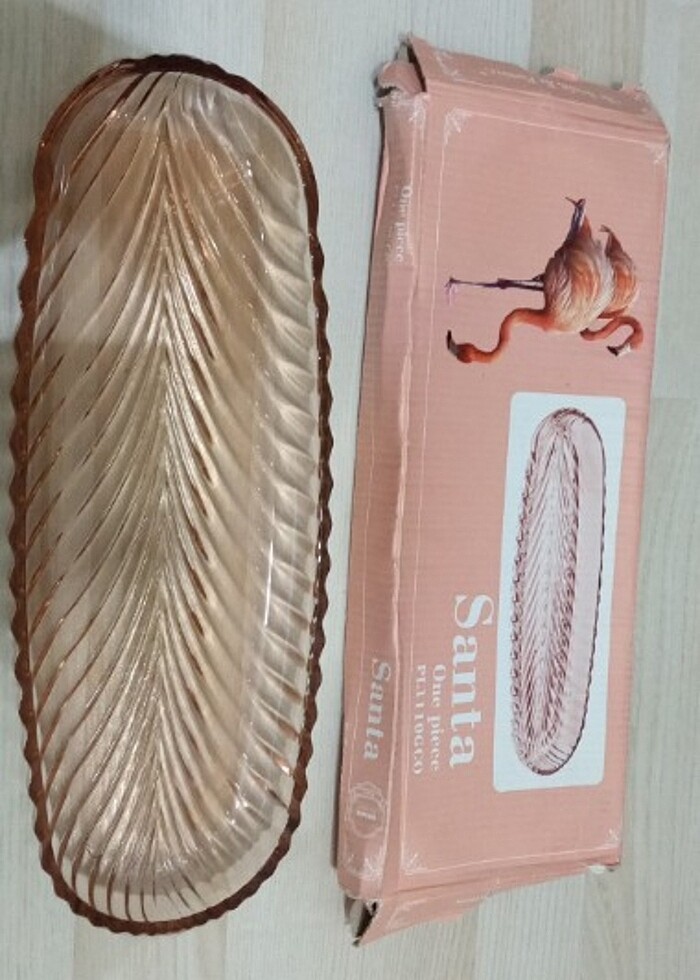 Cam servis tabağı . 33 cm. Flamingo rengi . Ürün hiç kullanılmadı, kutusu deforme.Fırsat ürünü