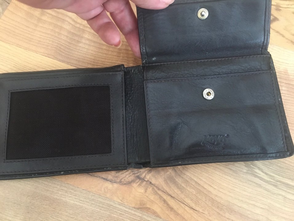 #KAYA COLLECTİON HAKİKİ DERİ CÜZDAN# SADECE ARKASINDA ÇOK AZ BELLİ OLMAYAN DEFORME MEVCUT GÖRSELLERDE BELİRTTİM BUNU FİYATA YANSITTM Siyah renkli, düğmeli kapanışa sahip minimalist erkek cüzdan, çoklu bölmeleriyle kullanışlıdır.