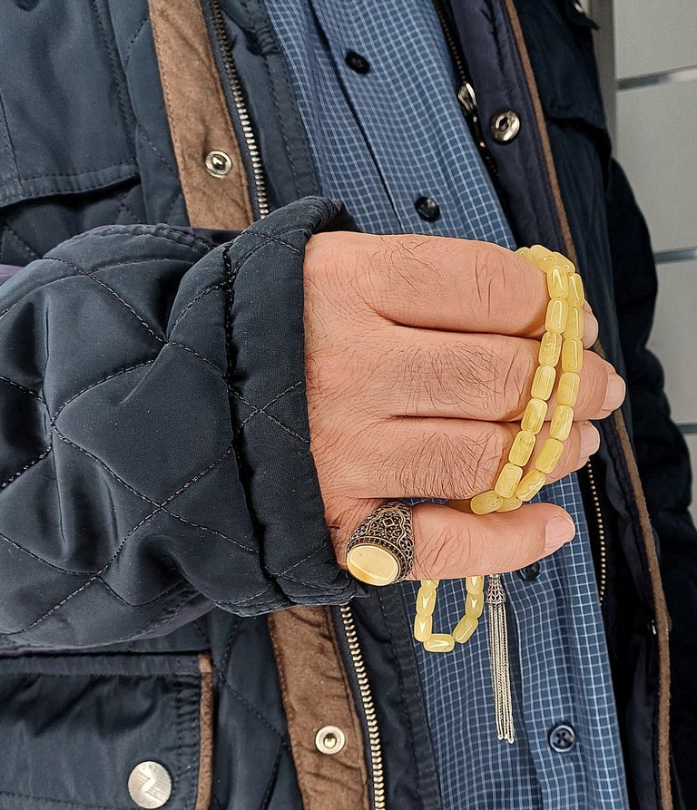 Kaya Damla Kehribar Gümüs Yüzük & Gümüş Püsküllü Tesbih Seti
