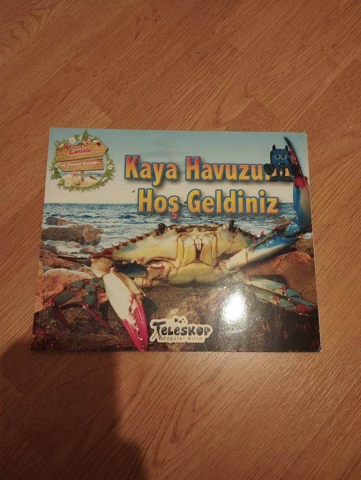 Kaya havuzu ve yengeç temalı, koyu camel renkli çocuk yapbozu, üzerinde 'Kaya Havuzu Hoş Geldiniz' yazısı bulunur.