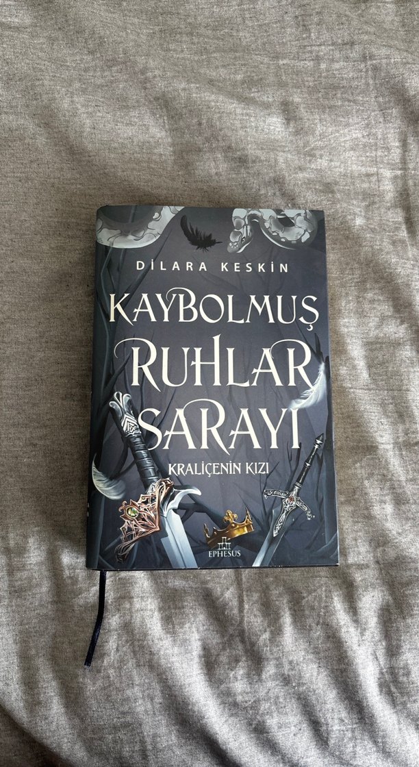 Dilara Keskin'in "Kaybolmuş Ruhlar Sarayı: Kralicenin Kızı" adlı fantastik romanı, kapakta kılıçlar ve taç bulunuyor.