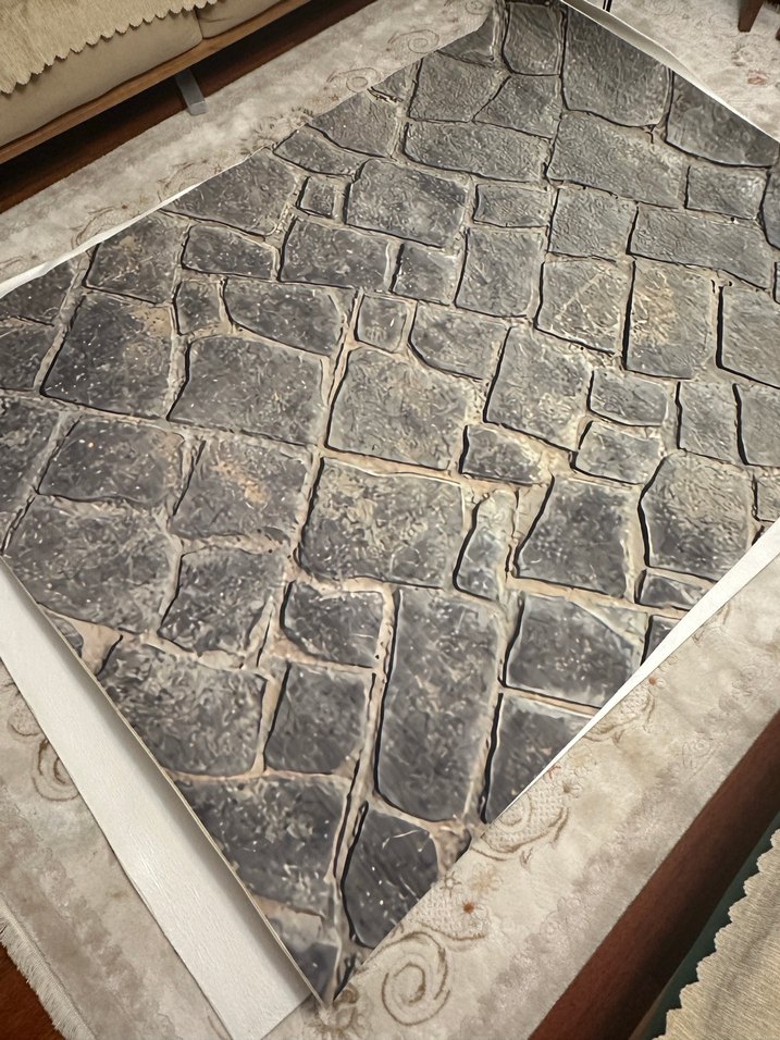 Geleneksel tarzda, taş döşeme görünümüne sahip gri taş desenli kalın mat