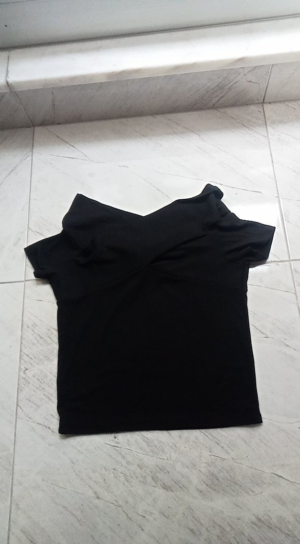 Siyah, tek renk, kısa kollu, V yaka hamile tişörtü, rahat sentetik kumaştan, günlük sokak stiline uygun.