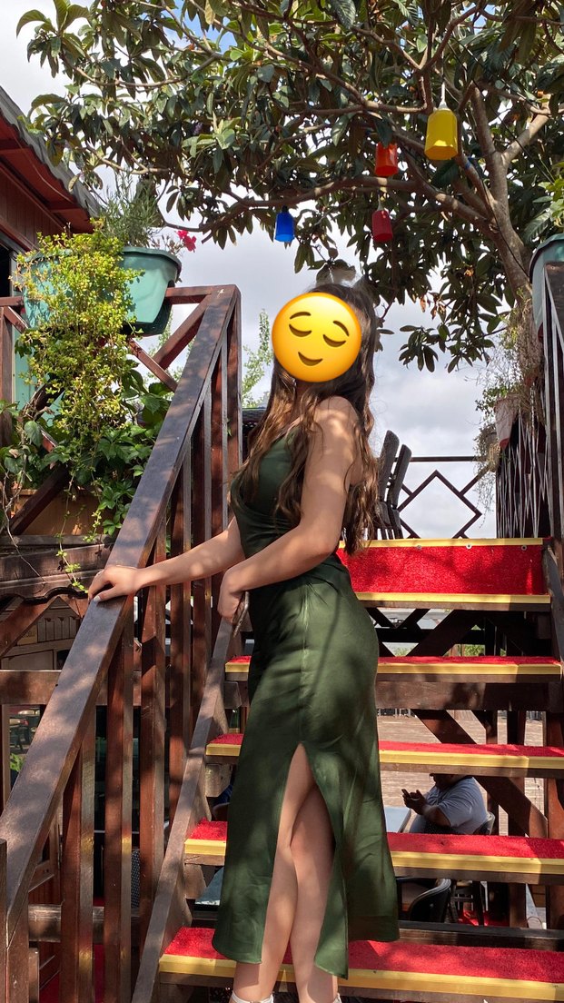 Kayık Yaka, Askılı, Uzun Saten Yeşil Elbise