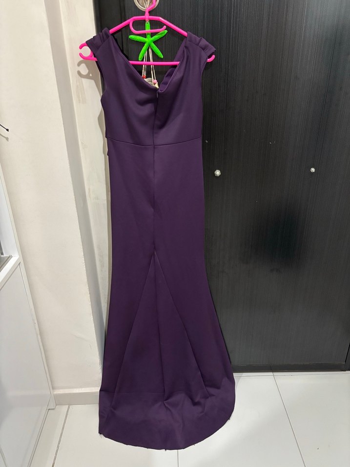 Kayık yakalı, kolsuz ve drapeli detaylara sahip uzun, vücuda oturan kadın elbisesi. Pürüzsüz sentetik kumaştan, gotik ve minimalist stiller için uygun, düğünlere ideal. Kusuru yok 1 kez kullanıldı S bedenım boy 1.60 tam oturuyor S bedene daha uyumlu Kalıbı dar olduğu ıcın M almıştım Yaka duruşunu ekledım