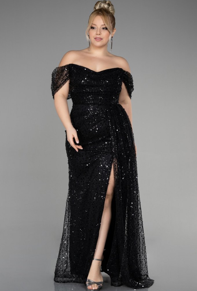 Kayık Yaka Pullu Büyük Beden Abiye