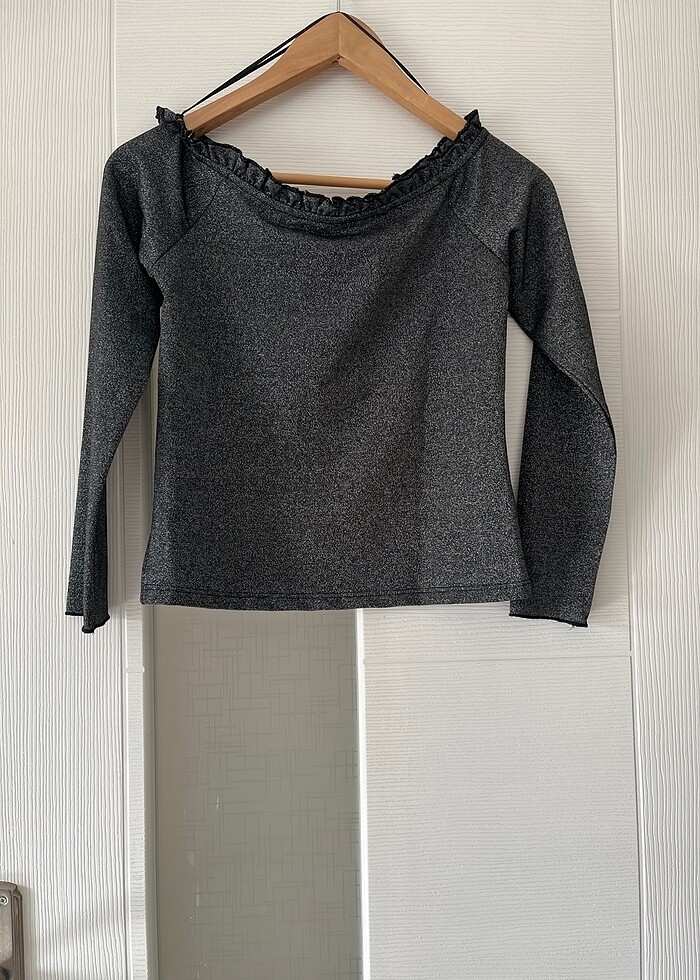 Koton kayık yaka simli crop. Etiketli hiç kullanılmadı