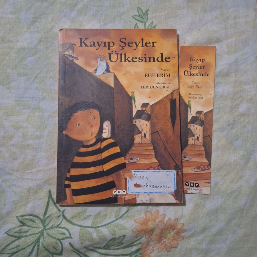 Ege Erim'in yazdığı, Feridun Oral'ın resimlediği, bir çocuğun yer aldığı 'Kayıp Şeyler Ülkesinde' çocuk kitabı.