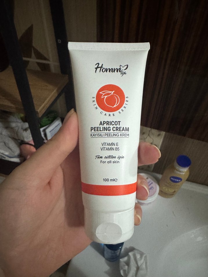Kayısı özlü peeling kremi, Vitamin E ve B5 içerir. Tüm cilt tipleri için nazikçe peeling yapar ve bakım sağlar. 100 ml.