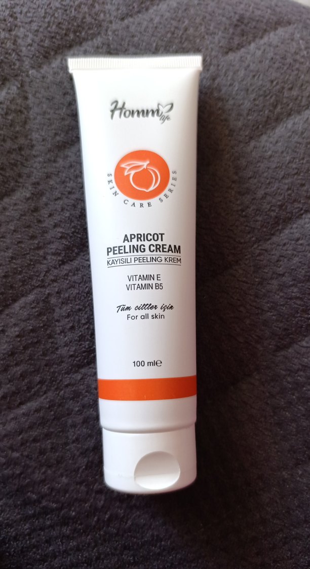 Vitamin E ve B5 içeren kayısılı peeling krem, tüm cilt tipleri için uygundur, 100 ml.