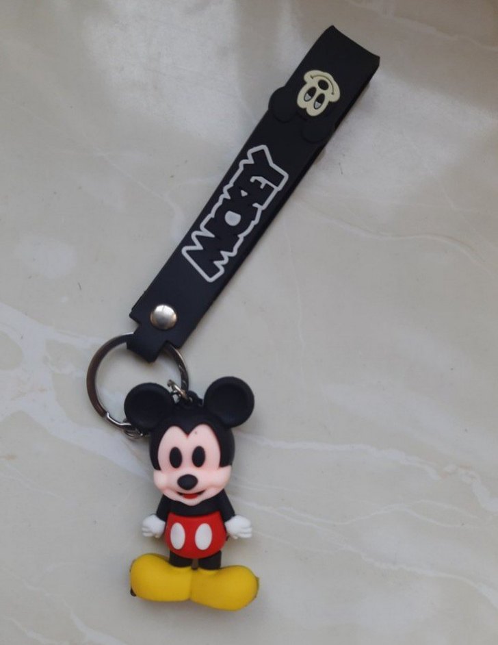 Siyah kayışlı, tokalı rock punk tarzı anahtarlık. Canlı renklerde Mickey Mouse figürüyle minimalist tasarım. ️