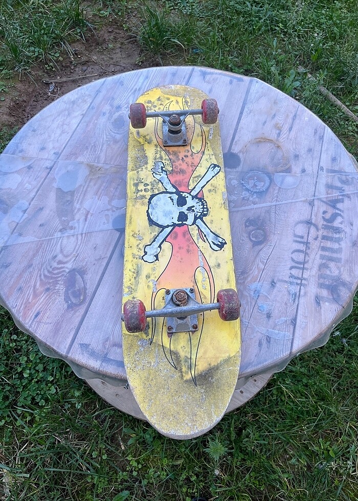 Orijinal bir ürün kullanmamaktan kaynaklı biraz da yağmurun altında kaldı boyaları sökülmüş ama tahtası sağlam tekerlekleri çok güzel bir şekilde dönüyor