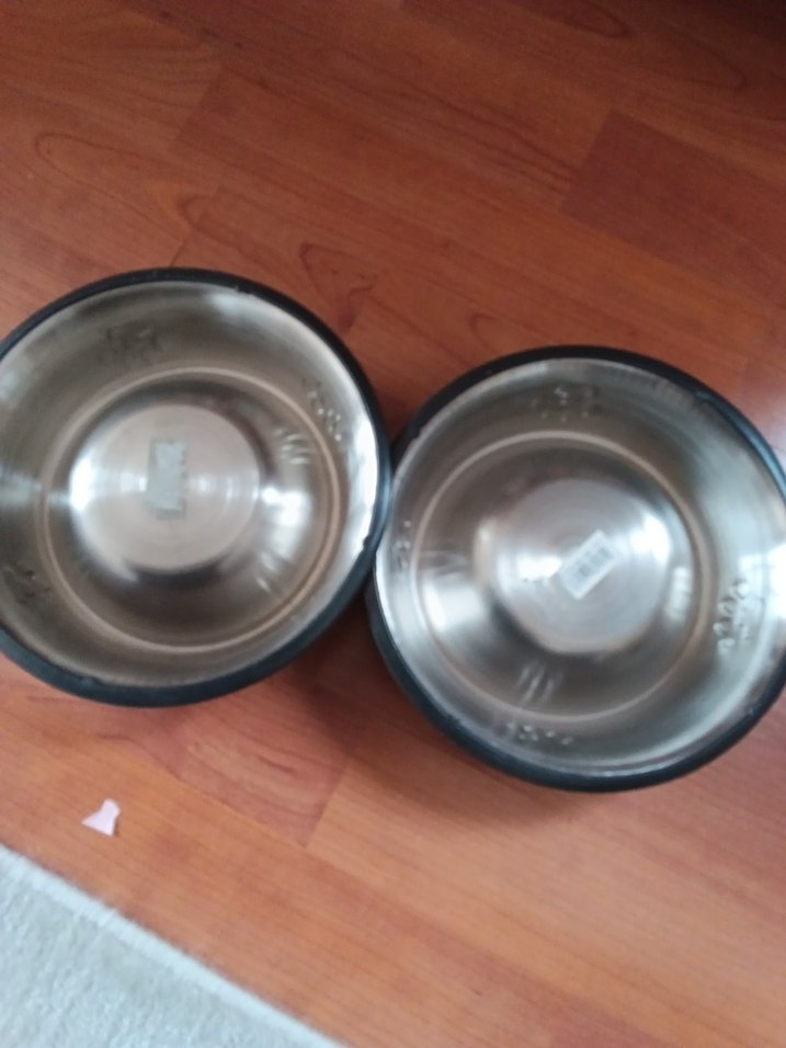 Kaymaz tabanlı, paslanmaz çelikten yapılmış iki mama kabı. Dayanıklı ve kullanışlı tasarım. ️