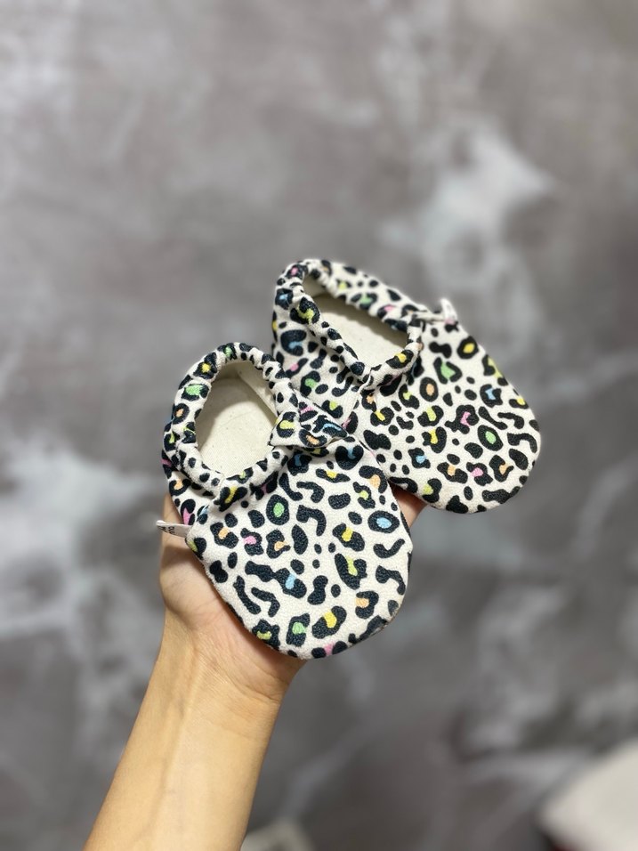 Renkli leopar desenli, lastikli kullanışlı ella bonna marka kız çocuk patiği. Kızım hem ev içinde hemde havuz kenarında rahatlıkla kullandı. Artık küçük geliyor. Hiç bir defosu yoktur. Tertemiz.