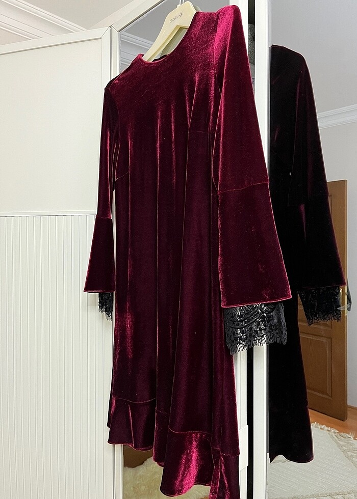 Kayra Özel gün kadife elbise. Bordo renklidir, yeni gibidir.