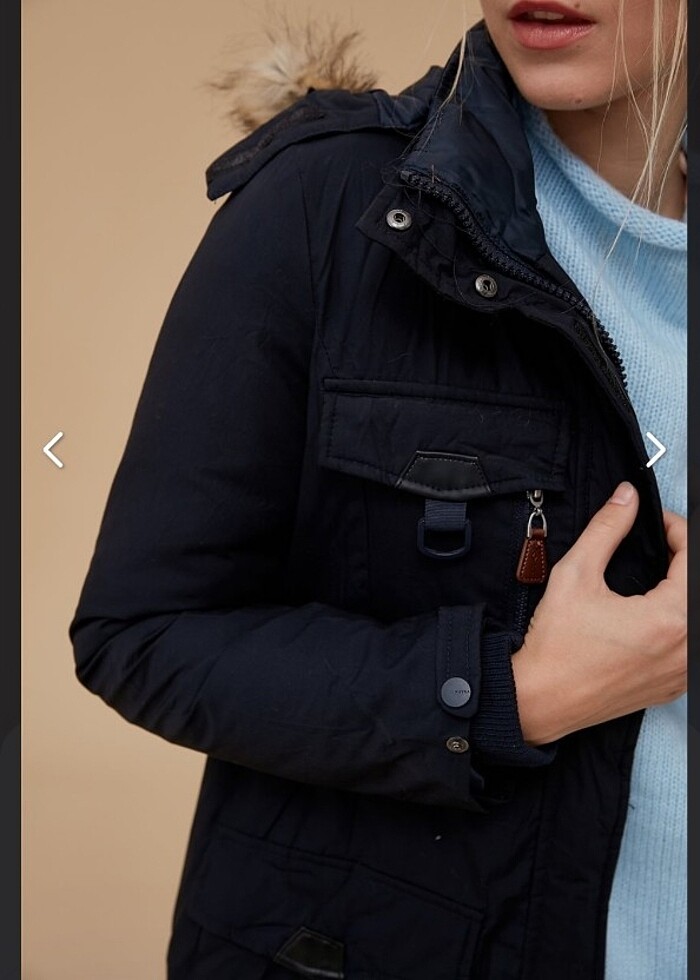 Sadece kolunun iç kısmında hafif bir yıpranma var son fotoğrafa koydum. Onun dışında temiz, sıkıntısı yok. 38 beden ama ben 36 beden olarak giydim bol değil, iç kısmında ayarlama lastikleri de mevcut.