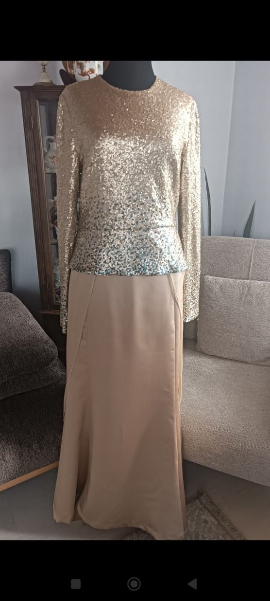 Kayra Marka Saten Parçalı Etek ve Pul Payetli Büstiyer