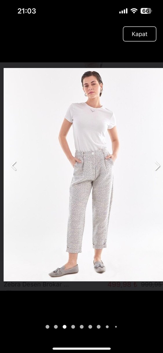 Etiketli hiç giymedim sorunu yoktur kombinleyemedigim için satıyorum kumaşı mevsimlik 88cm bilek boy, beli 32cm ama lastiği var esneme payı var Yumuşak pamuk kumaştan yapılmış, gri beyaz batik desenli, midi boy rahat kesim kadın pantolon. Günlük kullanıma uygun, zahmetsiz şıklık sunar.