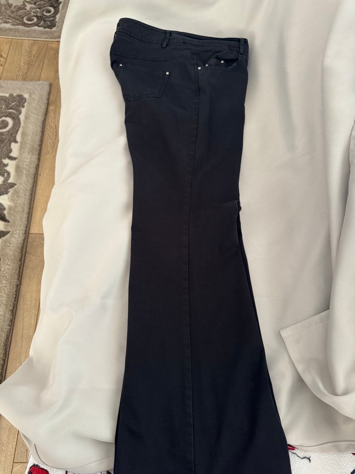 Siyah , ispanyol kesim keten pantolon. Minimalist gotik tarzda, günlük kullanım için şık ve rahat.