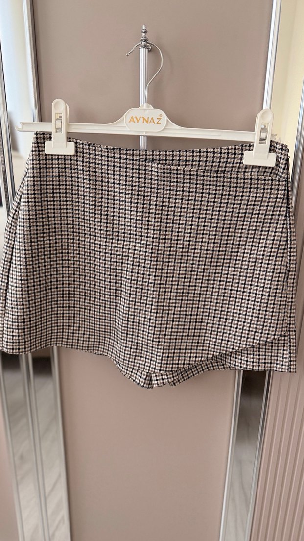 Bu sezon alındı. Kumaşı mükemmel. Kaz ayağı desenli mini şort etek, rahat kalıp ve yumuşak sentetik kumaştan, günlük sokak tarzı için uygundur.